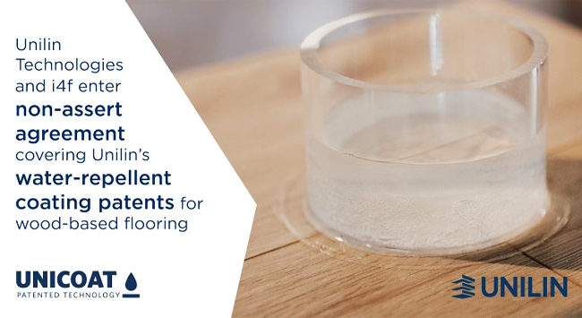 Unilin Technologies and i4f partner via non-assert agreement to enhance water-repellent coating solutions for laminate and wood flooring manufacturers.